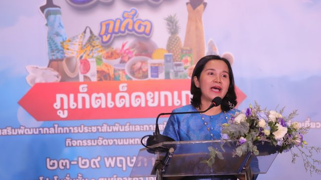 นางมุกดา หลิมนุกูล พัฒนาการจังหวัดภูเก็ต กล่าวว่า จังหวัดภูเก็ต โดยสำนักงานพัฒนาชุมชนจังหวัดภูเก็ตยกภูเก็ตมากลางกรุง ภายใต้แนวคิดการจัด “ภูเก็ตเด็ดยกเกาะ” ครั้งนี้เราจะยกเกาะภูเก็ตมาไว้ที่กรุงเทพฯ ผู้ที่เข้ามาเที่ยวชมงานจะได้บรรยากาศ ของความเป็นภูเก็ต โดยรวบรวมผลิตภัณฑ์OTOP ที่มีความโดดเด่นของจังหวัดภูเก็ตและจังหวัดภาคใต้ฝั่งอันดามัน กว่า 50 บูท จัดขึ้นในระหว่างวันที่ 23 – 29 พฤษภาคม 2566 ณ ลานโปรโมชั่น ชั้น 1 ศูนย์การค้า เจเจมอลล์ พบกับผลิตภัณฑ์เด่นมากมาย