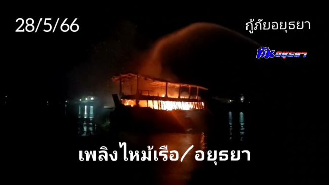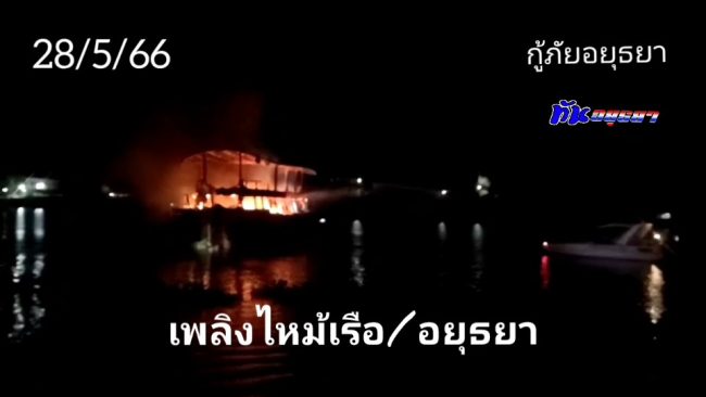 เวลา 01.00 น วันที่ 28 พ.ค.66 ตำรวจ สภ.พระนครศีอยุธยา กู้ภัยอยุธยา รถดับเพลิงจากท้องถิ่น ทีมงานดับเพลิงชัชตลาดไทย ร่วมกันตรวจสอบและให้การดับเพลิง ที่ลุกไหม้เรือเอี้ยมจุ้นขนาดใหญ่ ที่ดัดแปลงจอดประกอบเป็นเรือท่องเที่ยว ริมแม่น้ำเจ้าพระยา ที่คานเรือชื่อดัง ท้ายวัดพนัญเชิง เขต หมู่ที่ 4 ต.คลองสวนพลู อ.พระนครศรีอยุธยา จ.พระนครอยุธยา