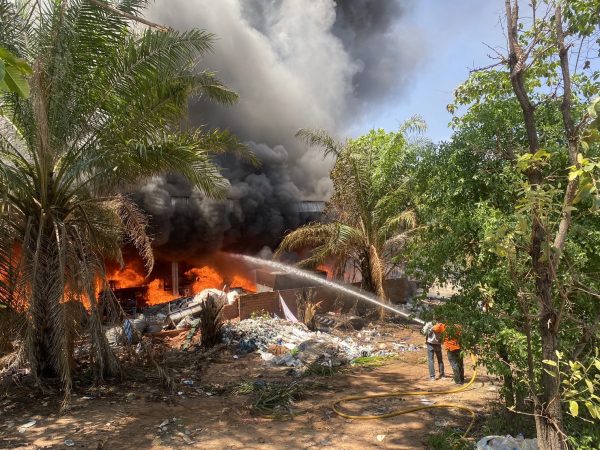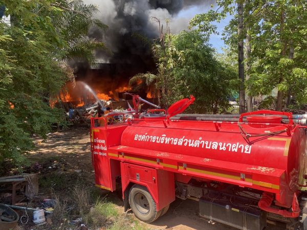 ขณะที่พ.ต.อ.สรวิศ มาอินทร์ นายก อบต.นาฝาย ทราบเหตุจึงรีบประสานและเดินทางมาควบคุมการดับไฟด้วยตนเอง ซึ่งเจ้าหน้าที่ดับเพลิงต้องเจออุปสรรคในการดับไฟ ทั้งจากมีกระแสลมแรงที่พัดแรงตลอดเวลา และอากาศแห้ง เจ้าหน้าที่ต้องฉีดน้ำยังจุดที่ไฟกำลังโหมลุกไหม้ และอีกส่วนต้องฉีดน้ำขึ้นไปบนยอดกองขยะที่สุงกว่า 10 เมตร เพื่อไม่ให้เพลิงได้ลุกลาม ไปยังโกดังที่อยู่ติดกัน โดยเพลิงที่ลุกไหม้อยู่ห่างจากบ้านเรือนประชาชน บ้านโนนเหลี่ยม ซึ่งเป็นหมู่บ้านใกล้ที่สุดประมาณ 3 กิโลเมตร รีบแจ้งให้ชาวบ้านได้ปิดประตู หน้าต่างบ้านไว้ไม่ให้ควันไฟปลิวเข้าบ้านเป็นมลพิษได้
