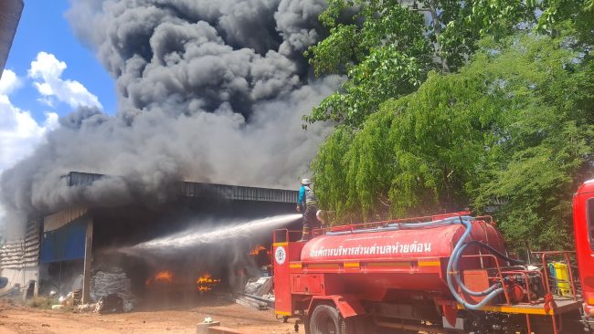 ชัยภูมิ-เกิดเหตุในโกดังอัดเม็ดพลาสติกจากรีไซเคิลขยะพลาสติกเอกชน พื้นที่บ้านโนนเหลี่ยม ต.นาฝาย อ.เมือง จ.ชัยภูมิ เพลิงโหมลุกไหม้ระทึกท่วมโกดังเก็บเม็ดพลาสติก เตรียมส่งขายพร้อมเครื่องอัดเม็ดพลาสติกวอดทั้งโกดัง ลุกท่วมสูงมองเห็นเปลวไฟ ควันไฟในระยะไกล ต้องระดมรถดับเพลิงมากกว่า 20 คัน ระดมฉีดน้ำสกัดไฟไม่ให้ลุกลามไปยังกองขยะข้างเคียง คาดใช้เวลาดับไฟไม่น้อยกว่า 12 ชั่วโมง จึงจะดับไฟได้ สาเหตุคาดเกิดจากไฟฟ้าลัดวงจรทำให้ประกายไฟตกใส่กองเม็ดพลาสติกในโกดังเกิดไฟลุกท่วม ค่าเสียหายไม่น้อยกว่า 40 ล้านบาท
