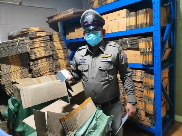 ตำรวจ ปอศ.ทลายโกดังจีน พบหัวชาร์จ สายชาร์จโทรศัพท์ปลอมเครื่องหมายการค้า และสินค้าปลอมเครื่องหมายการค้าขายผ่านออนไลน์ กว่า 190,000 ชิ้น มูลค่ากว่า 20 ล้านบาท