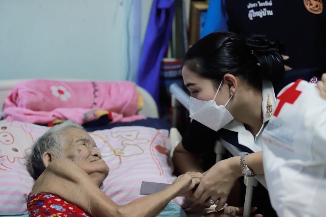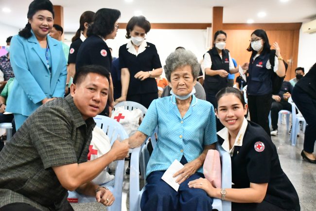 และมอบถุงยังชีพ จำนวน 20 ถุง พร้อมเงินสดช่วยเหลือให้แก่ผู้ป่วยติดเตียง ผู้สูงอายุ และผู้พิการที่ยากไร้ ในพื้นที่จังหวัดชลบุรี ซึ่งการช่วยเหลือในครั้งนี้ไม่ใช่เพียงเป็นการช่วยครั้งเดียว แต่หากพี่น้องประชาชนเดือดร้อนสามารถขอความช่วยเหลือเข้ามายังสำนักงานเหล่ากาชาดจังหวัดชลบุรีได้เลย ซึ่งทางคณะกรรมการเหล่ากาชาดจังหวัดชลบุรีพร้อมเข้าไปให้ความช่วยเหลือผู้ยากไร้ทุกคน ไม่ว่าจะเป็นด้านที่อยู่อาศัย ด้านการศึกษา หรือการดำรงชีวิตต่างๆ