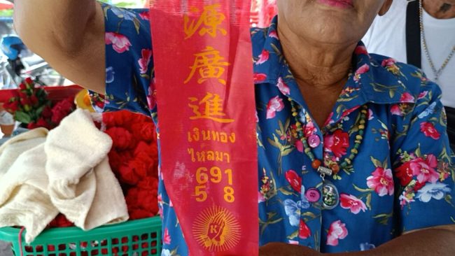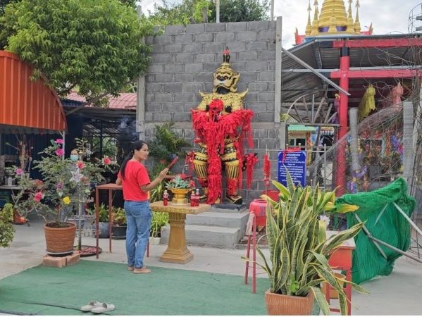“ตอนที่ช่วยงานวัดทางวัดเขาเปิดร้านขายก๋วยเตี๋ยวชามละ 10 บาท ฉันมาช่วยขายทำมานานหลายปีค่าจ้างไม่มี เพราะเป็นก๋วยเตี๋ยวการกุศล แต่ฉันไม่ได้คิดอะไร เพราะทำบุญช่วยวัดอีกอย่างตอนนั้น ก็ไม่ได้เดือดร้อนอะไรมาก เพราะมีเบี้ยยังชีพคนชรา กินข้าวก้นบาตรพระทุกวัน ส่วนลูกๆ ก็คอยส่งเงินมาช่วยเหลือด้วย ฉันจึงไม่ต้องไปดิ้นรนอะไรมาก ส่วนการมาใช้ชีวิตคลุกคลีอยู่ที่วัดแห่งนี้ นอกจากจะทำงานช่วยวัดแล้ว ฉันก็ยังมีหน้าที่คอยช่วยแนะนำให้กับญาติโยมที่มากราบไหว้องค์ท้าวเวชสุวรรณที่วัดด้วย แต่ฉันไม่เคยกราบไหว้นะ เนื่องจากนับถือศาสนาคริสต์มาตั้งแต่เกิด ไม่สามารถกราบไหว้ได้ แต่ก็มักจะคอยเอาเลขจากหางประทัดที่ญาติโยมเขามาจุดไหว้ทำบุญ เอาไปซื้อหวยอยู่ทุกงวด” ยายกังวลกล่าว