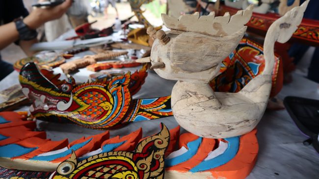 จากนั้นก็มีโอกาสได้ร่วมงานในกิจกรรมต่างๆ ในงานพื้นที่สร้างสรรค์ ทำให้ได้ออกโชว์งาน และจัดกิจกรรมเวิร์คช็อป “แต้มสีหัวเรือจิ๋ว” ให้นักท่องเที่ยวเปิดประสบการณ์สร้างสรรค์ผลงาน พร้อมทั้งได้เรียนรู้ประวัติศาสตร์ เอกลักษณ์และความสำคัญของเรือเมืองน่าน ด้วยเรื่องเล่าและเรื่องราวที่สนุกสนานเพลิดเพลิน อีกทั้งยังนำกลับไปเป็นของที่ระลึกและของฝากได้อีกด้วย เป็นกิจกรรมเวิร์คช๊อปสนุกๆ ที่ช่วยส่งเสริมการท่องเที่ยวโดยชุมชนบ้านศรีบุญเรือง และได้ร่วมโครงการยกระดับงานหัตถกรรมและศิลปะพื้นบ้านเชิงสร้างสรรค์ เพื่อขับเคลื่อนเมืองน่านสู่การเป็นสมาชิกเครือข่ายเมืองสร้างสรรค์ขององค์การยูเนสโก ด้านหัตถกรรมและศิลปะพื้นบ้าน ทำให้ได้แลกเปลี่ยนความรู้เทคนิคเชิงช่าง ได้เห็นไอเดียแปลกใหม่ ก็นำมาพัฒนาและทดลองประยุกต์ จากเรือลวดลายดั้งเดิมที่มีรายละเอียด ก็ออกแบบให้ร่วมสมัยมากขึ้น มีการปรับลดทอนรายละเอียดลง แต่ยังคงเอกลักษณ์ของเรือเมืองน่านหนึ่งเดียวในประเทศไทย คือ หัวโอ้ หรือหัวโขนเรือ ที่เป็นรูปพญานาค และหางวัลย์ (ส่วนหางเรือ) จะเป็นหางหงส์ และการลงสีหลักๆ 6 สี คือ สีดำ สีแดง สีเขียว สีเหลือง สีขาว สีส้ม (หมากสุก) รวมทั้งใช้สีทองเพื่อเพิ่มความโดดเด่น และยกระดับงานแกะสลักด้วยไม้มงคล ได้แก่ ไม้ค้ำ ไม้ขนุน และไม้สักทอง ออกแบบทำเป็นที่เสียบปากกา ของฝากของที่ระลึก