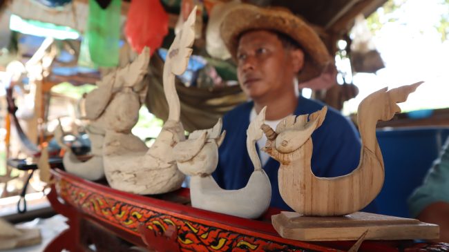 นายณัฐวีย์ ขัติยศ อายุ 44 ปี หรือ ช่างอู เป็นช่างแกะสลักหัวเรือไม้บ้านศรีบุญเรือง ต.ม่วงตึ๊ด อ.ภูเพียง จ.น่าน เล่าว่า “เป็นความผูกพันกับสายน้ำน่าน เห็นปู่เห็นพ่อ เป็นสล่า (ช่าง) แกะสลักไม้หัวเรือ หรือ หัวโอ้ เป็นช่างขุดเรือใหญ่ที่มีชื่อเสียงทางอำเภอท่าวังผา จ.น่าน และพ่อเป็นนายท้ายเรือ “ขุนน่าน” ได้ถ้วยรางวัลพระราชทาน 3 ปีซ้อน ครอบครัวเป็นช่างทำเรือ นั่นคือแรงบันดาลใจ ได้ซึมซับและชื่นชอบมาตั้งแต่เด็ก ตัวเองก็เป็นฝีพายเรือ รวมทั้งยังได้เรียนรู้เทคนิคและลวดลายการแกะสลักไม้ การทาสีลงสี ที่เป็นเอกลักษณ์เรือเมืองน่าน”
