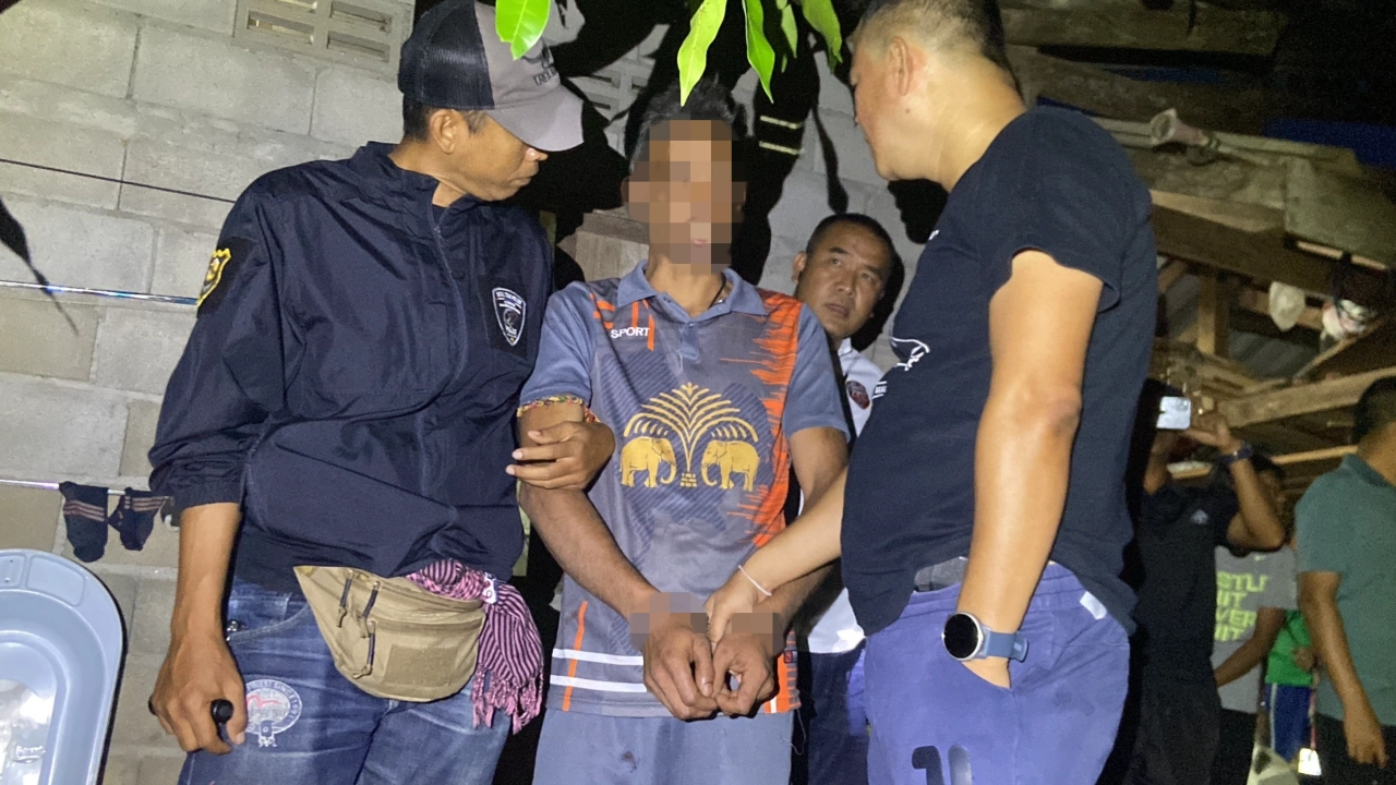 จากการสอบถามชาวบ้านใกล้เคียง ทราบว่า คือ นายอวยพร ทองแท่น อายุ 36 ปี เจ้าของบ้านหลังดังกล่าว หลังก่อเหตุขี่รถ จยย.พาภรรยาและลูกชาย 2 คน หลบหนีไป เจ้าหน้าที่ตำรวจจึงตามไปตรวจสอบที่บ้านภรรยาของผู้ก่อเหตุ ซึ่งอยู่ห่างจากบ้านหลังเกิดเหตุไม่ถึง 1 กิโลเมตร จนพบตัว นายอวยพร สภาพยังสวมเสื้อเปื้อนเลือดที่ใส่ก่อเหตุ เจ้าหน้าที่จึงควบคุมตัวไว้สอบสวน