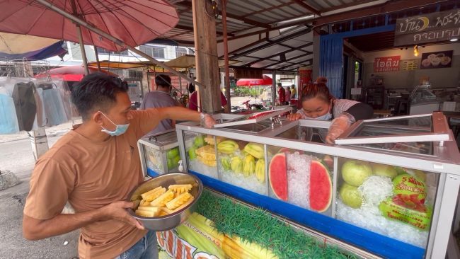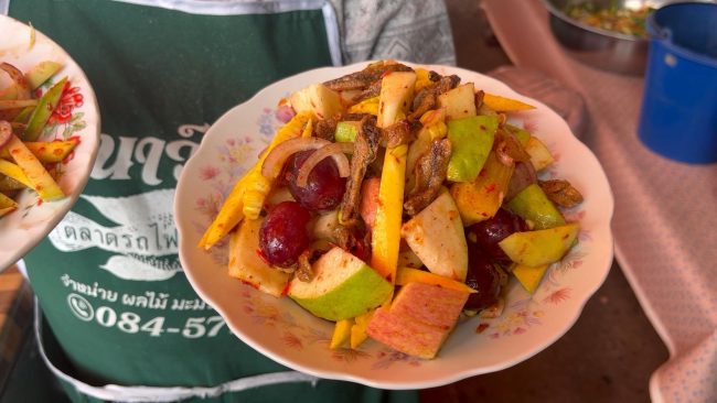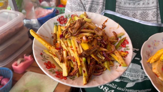 “ที่ร้านเตรียมมะม่วงไว้ขายวันละ 30 ก.ก.และยังมีผลไม้อื่นๆให้เลือกอีกกว่า 10 ชนิด โดยเฉพาะเมนูยำมะม่วง ,ยำผลไม้, ยำสับปะรด ,ยำกระท้อน, ยำข้าวโพด ทั้งยังคงสามารถสั่งผลไม้ที่มีในร้านมายำได้ตามและแต่ลูกค้าชอบได้อีกด้วย”