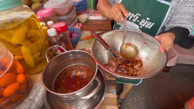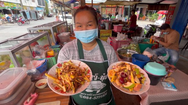 น.ส.อ้อยทิพย์ กล่าวต่ออีกว่าสำหรับเมนูขายดีที่ร้านจะเป็นยำมะม่วง ทีเด็ดอยู่ที่น้ำราดที่ใช้ยำมีทั้งใส่กะปิและน้ำปลาหวาน ซึ่งถือเป็นน้ำนำพิเศษสูตรเฉพาะของทางร้าน โดย เครื่องเคียงที่ใส่จะเป็น ถั่วลิสง ,กุ้งแห้ง, หอมแดง, ปลากรอบ ขณะที่ราคาจำหน่ายเริ่มต้นยำมะม่วงถุงละ 25 บาท ยำผลไม้เริ่มต้นถุงละ 35 บาท เท่านั้น