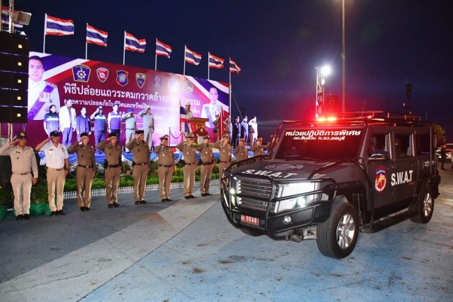 วันศุกร์ที่ 30 มิถุนายน 2566 เวลา 18.30 น. นายธวัชชัย ศรีทอง ผู้ว่าราชการจังหวัดชลบุรี เป็นประธานในพิธีปล่อยแถวระดมกวาดล้างอาชญากรรมดูแลความปลอดภัยในชีวิตและทรัพย์สินของประชาชนและนักท่องเที่ยว ภายใต้ยุทธการ “พิทักษ์ชล” ประจำปี 2566