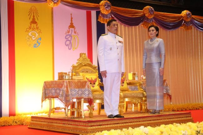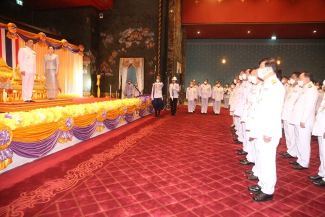 พระบาทสมเด็จพระเจ้าอยู่หัว และสมเด็จพระนางเจ้าฯ พระบรมราชินี เสด็จขึ้นชั้น 11 โดยลิฟท์ เสด็จเข้าห้องรับรอง ประทับพระราชอิริยาบถ ตามพระราชอัธยาศัย จากนั้นเสด็จออกจากห้องรับรอง เข้าห้องประชุมฯ ดนตรีบรรเลงเพลงสรรเสริญพระบารมี โดยมีผู้เข้าร่วมพิธี องคมนตรี รวมทั้งนายกรัฐมนตรี คณะรัฐมนตรี (ครม.) ประธานศาลฎีกา ประธานศาลรัฐธรรมนูญ ประธานศาลปกครอง ประธานคณะกรรมการการเลือกตั้ง (กกต.) ทูตานุทูต สมาชิกรัฐสภา ทั้งส.ส. และส.ว.