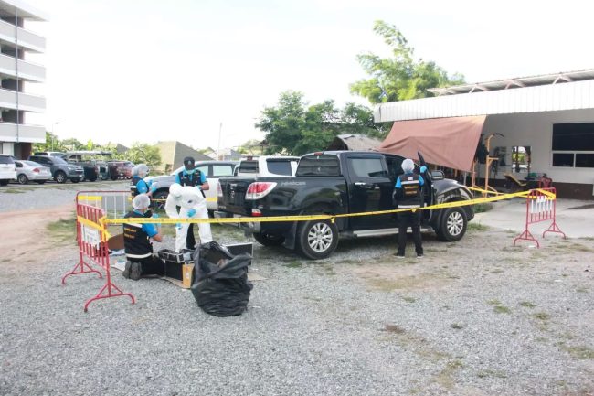 ล่าสุดเจ้าหน้าที่ตำรวจได้เรียกเจ้าของรถกระบะ มาสด้า สึดำ ทะเบียน ขย 5667 ชลบุรี ซึ่งเป็นสองผัวเมีย คือนายอดิสรณ์ น้าวแดง อายุ 49 ปี และนางจิณห์นิภา น้าวแสง อายุ 47 ปี ภรรยา ที่เข้าไปขนล้อแม็ก โดยได้สอบปากคำนานกว่า 4 ชั่วโมงแต่ไม่ยอมเปิดเผยรายละเอียดแก่ผู้สื่อข่าวโดยแจ้งว่าทางเจ้าหน้าที่ตำรวจไม่อนุญาตให้ข้อมูล ส่วนทางเจ้าหน้าที่วิทยาการ ได้ตรวจรถยนต์กระบะจำนวน 2 คัน คือรถรถกระบะ มาสด้าของ 2 ผัวเมียที่ไปยกล้อแม็กรถ และรถกระบะ ตโยต้า รีโว่ จค 7679 ชลบุรี ซึ่งเป็นรถของนายโอราฟ ที่เจ้าหน้าที่ตำรวจเชิญมาสอบปากคำเมื่อคืนที่ผ่านมา