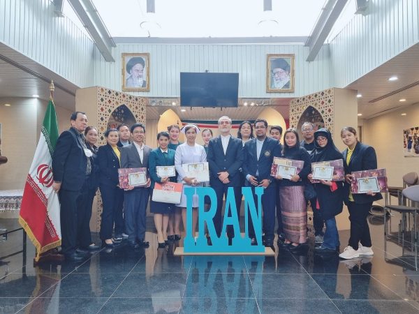นักศึกษาเรียนภาษาเปอร์เซีย ประจำศูนย์อิสลามและอิหร่านศึกษา วิทยาลัยเทคโนโลยีสยาม นำโดย ดร.ประเสริฐ สุขศาสน์กวิน คณบดีคณะรัฐประศาสนศาสตร์/ผู้อำนวยการศูนย์อิสลามและอิหร่านศึกษา วิทยาลัยเทคโนโลยีสยาม พร้อมกับท่านไกรเดช บุนนาค ที่ปรึกษาศูนย์อิสลามและอิหร่านศึกษา ร่วมพิธีมอบเกียรติบัตรให้นักศึกษาที่จบคอร์สภาษาเปอร์เซีย โดย ฯพณฯเอกอัครราชทูต สาธารณรัฐอิสลามแห่งอิหร่าน ประจำกรุงเทพฯ