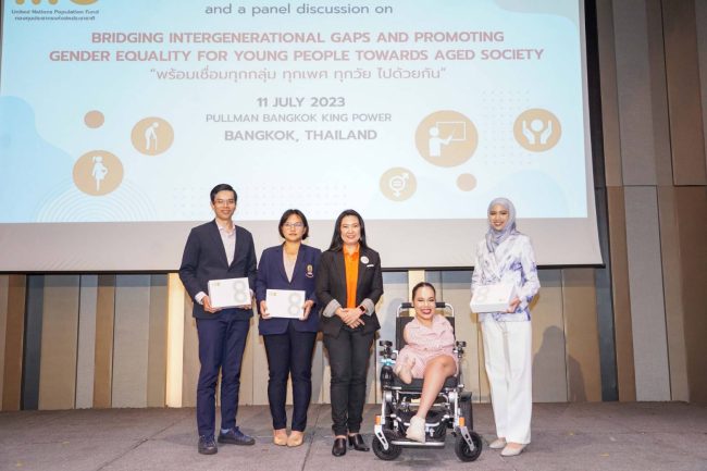 นอกจากนี้ยังมีการเสวนาโดยมี “ฝ้าย บุญธิดา ชินวงษ์” Beauty blogger ชื่อดัง รศ.ดร. รัตติยา ภูละออ วิทยาลัยประชากรศาสตร์ จุฬาลงกรณ์มหาวิทยาลัย “คุณธนวัฒน์ พรหมโชติ” อดีตประธานสภาเด็กและเยาวชนแห่งประเทศไทย “คุณธนโรจน์ อมรากุลเศรษฐ์” ผู้บริหารหัวหน้าฝ่ายการตลาด ทรู ดิจิตอล อะคาเดมี “คุณซาเนีย กาชาว” ผู้ชนะเลิศจากกิจกรรมประกวดคลิปวิดีโอ UNFPA และ“คุณสิริลักษณ์ เชียงว่อง” หัวหน้าสำนักงาน UNFPA ประจำประเทศไทย ร่วมเสวนาในประเด็น “Bridging Intergenerational Gaps and Promoting Gender Equality for Young People Towards Aged Society: พร้อมเชื่อมทุกกลุ่ม ทุกเพศ ทุกวัย ไปด้วยกัน”