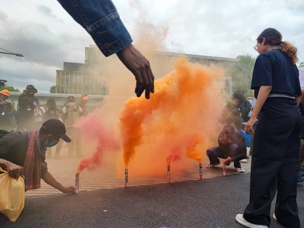 ม็อบบริเวณหน้าสภาเดือด “จุดพลุควัน-ปาประทัด-กระเทียม”ลงพื้น โปรยใบปลิวหน้าสภาประท้วงหลังศาลรธน.สั่ง”พิธา”หยุดทำหน้าที่ส.ส. ด้าน ตำรวจ ประกาศ ให้มวลชนกลับไปชุมนุมศูนย์ราชการฯ ไม่งั้นเสี่ยงผิดกฎหมาย