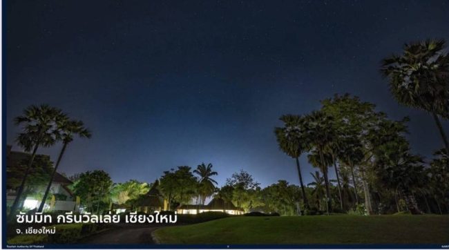 นายอัครพงศ์ จุฬางกูร กรรมการผู้จัดการ ของสนามกอล์ฟซัมมิท กรีน วัลเล่ย์ เชียงใหม่ เปิดเผยว่า การท่องเที่ยวแห่งประเทศไทย และสถาบันวิจัยดาราศาสตร์แห่งชาติ (องค์การมหาชน) ประกาศให้ “ซัมมิท กรีน วัลเล่ย์ เชียงใหม่” เป็น 1 ใน 18 พื้นที่ชมดาว Dark Sky in Thailand ประจำปี 2566 จึงเป็นสนามกอล์ฟแห่งแรกในประเทศไทยที่เป็นเขตอนุรักษ์ท้องฟ้ามืดเพื่อการชมดาว ภายใต้เกณฑ์มาตรฐานเขตอนุรักษ์ท้องฟ้ามืดของสถาบันวิจัยดาราศาสตร์แห่งชาติ (องค์การมหาชน) กระทรวงการอุดมศึกษา วิทยาศาสตร์วิจัย และนวัตกรรม (สดร.)