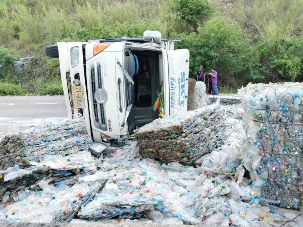 ปราจีนบุรี–รถบรรทุก 6 ล้อขวดน้ำรีไซเคิลเบรกแตกพลิกคว่ำเทกระจาดขวดน้ำรีไซเคิลเกลื่อนถนนทางหลวงแผ่นดินหมายเลข 304 ขาลงเขา สามโทน บ้านเขาทราย หมู่ที่ 4 ต.บุพราหมณ์ อ.นาดี โชคดีไม่มีผู้เสียชีวิตหรือบาดเจ็บ
