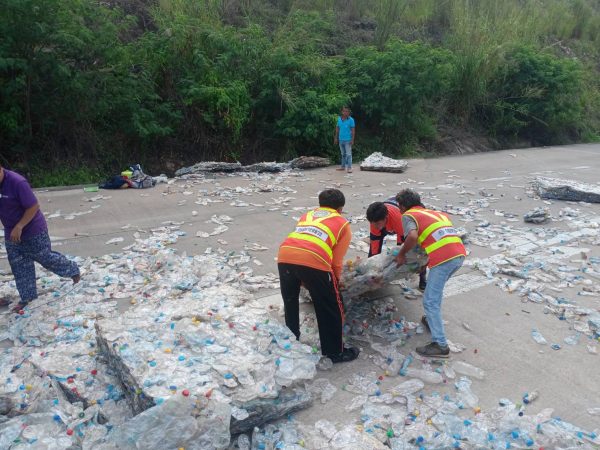 โดยเก็บขวดน้ำรีไซเคิลที่กระจายอยู่บนถนน โดยมีกำลังเจ้าหน้าที่ อบต.บุพราหมณ์ เจ้าหน้าที่หมวดทางหลวงกบินทร์บุรี เจ้าหน้าที่ตำรวจทั้ง 2 แห่ง กำนัน ผู้ใหญ่บ้าน และประชาชน ประมาณ 30 คน ช่วยเคลียเส้นทาง และอำนวยความสะดวกด้านการจราจร คาดว่าเวลาประมาณ 10.10 น. จะสามารถเปิดการจราจรได้