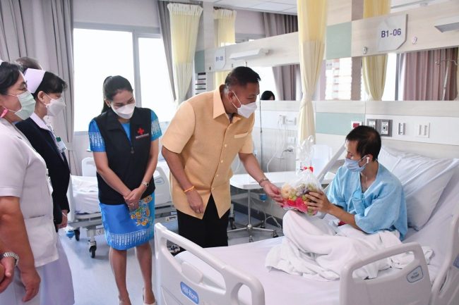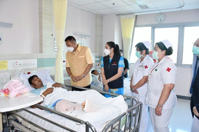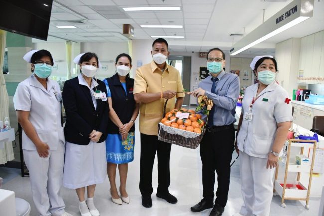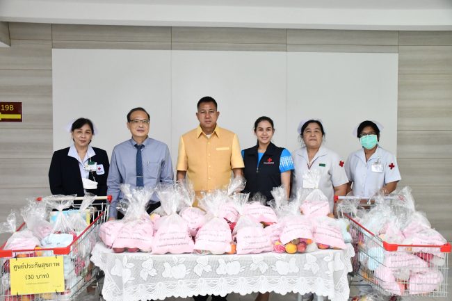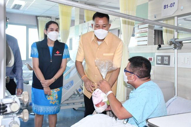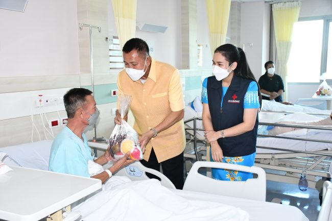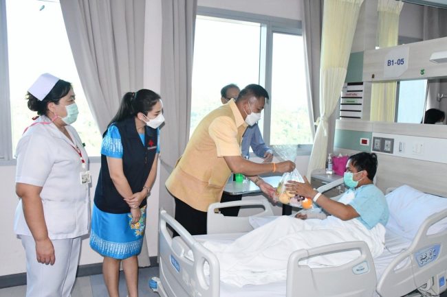 เมื่อเวลา 16.30 น. วันที่ 26 กรกฎาคม 2566 ณ โรงพยาบาลสมเด็จพระบรมราชเทวี ณ ศรีราชา สภากาชาดไทย อำเภอศรีราชา จังหวัดชลบุรี นายธวัชชัย ศรีทอง ผู้ว่าราชการจังหวัดชลบุรี พร้อมด้วยนางสาวประภัสรา ศรีทอง นายกเหล่ากาชาดจังหวัดชลบุรี ร่วมมอบสิ่งของและผลไม้ให้แก่เจ้าหน้าที่ผู้ปฏิบัติงานโรงพยาบาลสมเด็จพระบรมราชเทวี ณ ศรีราชา สภากาชาดไทย และผู้ป่วยที่มารับบริการที่โรงพยาบาลฯ เพื่อสร้างขวัญกำลังใจ