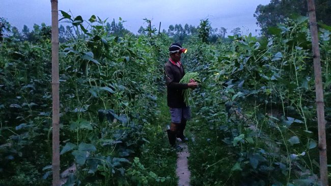 จากนั้นก็จะนำมาวางไว้แล้วล้างน้ำทำความสะอาดคราบดอกที่ติดอยู่ปลายถั่วฝักยาวออก ใช้เวลาการเก็บถั่วฝักยาวแต่ละครั้ง หลังเที่ยงคืนถึงเที่ยงวัน จึงจะล้างเสร็จ การเก็บถั่วฝักยาวทุกวันจะรวมปริมาณ 150-200 กก./วัน ขายสร้างรายได้วันละ 1,000 กว่าบาท / วัน ดีกว่า การไปเป็นลูกจ้าง หรือลูกน้องใคร ๆ มีความอิสระในการจัดสรรเวลา การดูและชีวิต -ครอบครัวได้เต็มที่