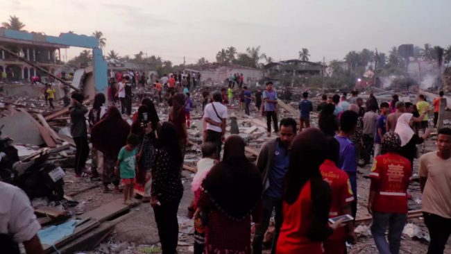 จากเหตุโศกนาฎกรรมโกดังเก็บประทัดและดอกไม้เพลิงระเบิดที่ตลาดมูโนะ ตั้งอยู่ใจกลางชุมชนตลาดริมถนนสายตากใบ-สุไหงโก-ลก ที่ถือว่าเกิดเหตุไฟไหม้โกดังขนาดใหญ่ชั้นเดียวยกพื้นสูง กลุ่มควันพวยพุ่งลอยเต็มท้องฟ้า อานุภาพของระเบิดทำให้โกดังพังถล่มลงมาหมดทั้งหลัง บ้านเรือนประชาชนและร้านค้าที่อยู่ข้างเคียงในรัศมี 500 เมตร ได้รับผลกระทบเสียหายอีกกว่า 200 หลัง เจ้าหน้าที่พยายามเข้าไปฉีดน้ำดับไฟด้านในมอดสนิทแล้ว ล่าสุด เสียชีวิตพุ่งแล้ว 10 ศพ เจ็บ 118 คน สูญหายอีก 2 ราย ร้านค้าและบ้านพังถล่มราบเป็นหน้ากลองกว่า 200 หลัง