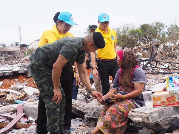 พลตรี เฉลิมพร กล่าวอีกว่า ศูนย์บรรเทาสาธารณภัย กรมทหารราบที่ 151 จัดรถครัวสนามพระราชทาน จำนวน 1 คัน ประกอบเลี้ยงอาหารให้แก่ผู้ประสบภัย ,รถยนต์ FTS จำนวน 3 คัน ซึ่งเป็นรถยนต์ขนาดใหญ่เข้าช่วยเหลือพี่น้องประชาชนที่ได้รับความเดือดร้อน ขนย้ายประชาชน พร้อมทั้งทรัพย์สิน อพยพเข้ามายังศูนย์พักพิง , จัดกำลังพล ชุดปฎิบัติการจิตอาสาฯ จากกรมทหารราบที่ 151 และ หน่วยขึ้นตรง จำนวน 50 นาย ทำหน้าที่อำนวยการความสะดวก และให้การช่วยเหลือกับพี่น้องประชาชนที่ได้รับความเดือดร้อนในพื้นที่เกิดเหตุ และศูนย์พักพิง (ศูนย์กีฬาองค์การบริหารส่วนตำบลมูโนะ ), รถบรรทุกน้ำ จำนวน 1 คัน ให้บริการน้ำแก่ผู้ประสบภัย ,ชุดทหารช่าง จำนวน 5 ชุดปฎิบัติการ พร้อมเครื่องยุทโธปกรณ์ในการวางแผน รื้อถอน ซากสิ่งก่อสร้างต่าง ๆ ก่อนจะพร้อมทำการเร่งปลูกสร้างที่อยู่อาศัยใหม่ให้กับผู้ประสบภัย