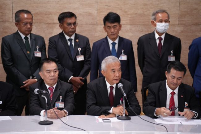 เมื่อวันที่ 9 ส.ค.2566 เวลา 12.33 น.ที่รัฐสภา พรรคเพื่อไทย นำโดยนพ.ชลน่าน ศรีแก้ว นายภูมิธรรม เวชยชัย รองหัวหน้าพรรคและนายประเสริฐ จันทรรวงทอง เลขาธิการพรรค พร้อมด้วย พ.ต.อ.ทวี สอดส่อง เลขาธิการพรรคประชาชาติ นายสุวัจน์ ลิปตพัลลภ ประธานพรรคชาติพัฒนากล้า พล.ต.อ.เสรีพิศุทธ์ เตมียเวส หัวหน้าพรรคเสรีรวมไทย เลขาธิการพรรคเพื่อไทรวมพลัง พรรคพลังสังคมใหม่ พรรคท้องที่ไทย แถลงรวมเสียงจัดตั้งรัฐบาลเพื่อไทย รวม 238 เสียง