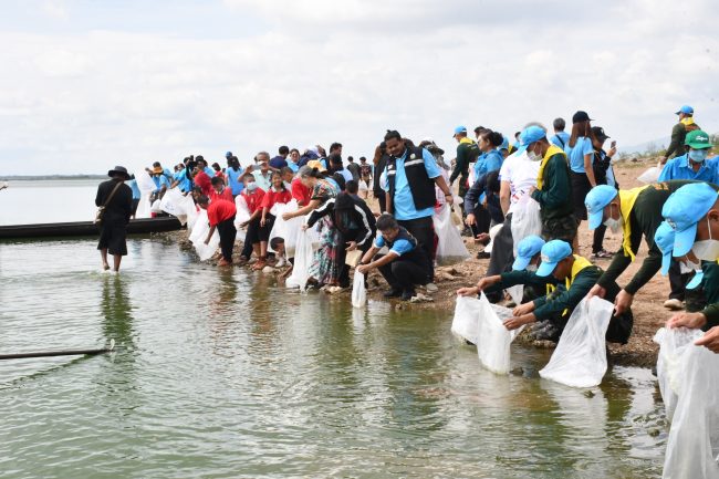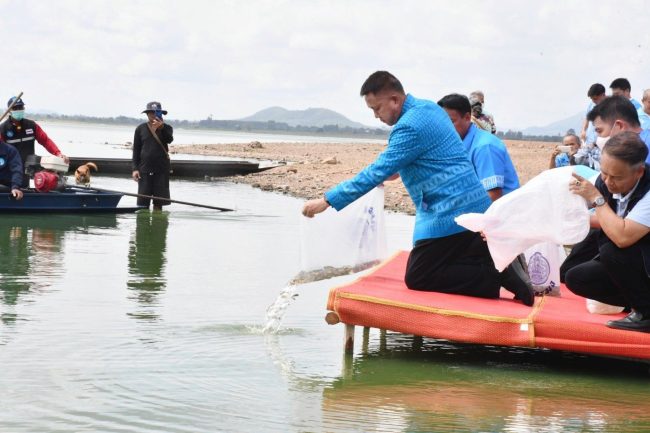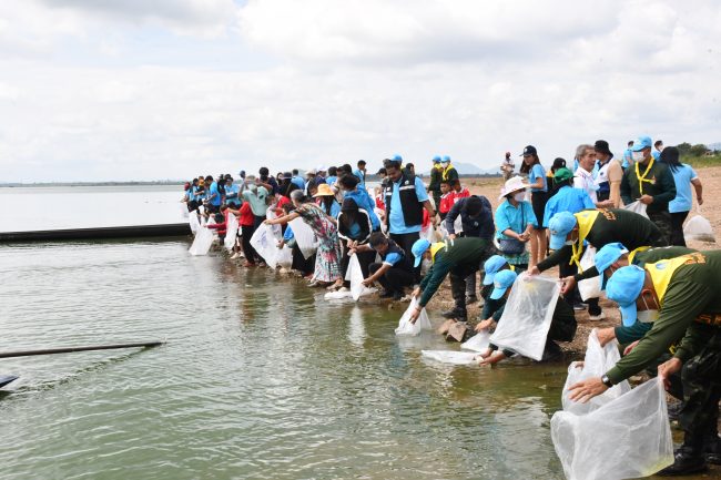 โดยมี นายณัฐพงค์ วรรณพัฒน์ ประมงจังหวัดชลบุรี นายศรายุทธ ไชยกอง นายอำเภอเกาะจันทร์ พร้อมด้วยหัวหน้าส่วนราชการ ผู้บริหารองค์กรปกครองส่วนท้องถิ่น กำนัน/ผู้ใหญ่บ้าน นักเรียน นิสิต นักศึกษา จิตอาสาและประชาชนในพื้นที่ร่วมพิธีเป็นจำนวนมาก ณ อ่างเก็บน้ำคลองหลวง รัชชโลทร อันเนื่องมาจากพระราชดำริ ตำบลท่าบุญมี อำเภอเกาะจันทร์ จังหวัดชลบุรี