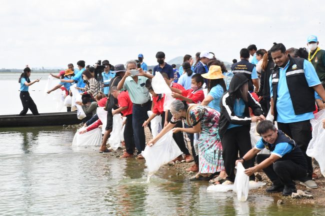 โดยมี นายณัฐพงค์ วรรณพัฒน์ ประมงจังหวัดชลบุรี นายศรายุทธ ไชยกอง นายอำเภอเกาะจันทร์ พร้อมด้วยหัวหน้าส่วนราชการ ผู้บริหารองค์กรปกครองส่วนท้องถิ่น กำนัน/ผู้ใหญ่บ้าน นักเรียน นิสิต นักศึกษา จิตอาสาและประชาชนในพื้นที่ร่วมพิธีเป็นจำนวนมาก ณ อ่างเก็บน้ำคลองหลวง รัชชโลทร อันเนื่องมาจากพระราชดำริ ตำบลท่าบุญมี อำเภอเกาะจันทร์ จังหวัดชลบุรี
