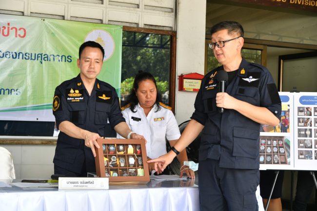 1) วันที่ 24 กรกฎาคม 2565 กรมศุลกากรได้ตรวจยึดนาฬิกาดังกล่าว และได้ประสานงานไปยังตัวแทนสิทธิในประเทศไทย เพื่อดำเนินการตรวจสอบของกลางในคดี คือ นาฬิกาหรู จำนวน 13 เรือน