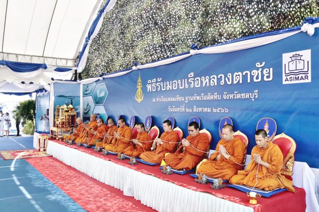 เมื่อวันที่ 21 ม.ค.66 เวลา 14.29 น. พลเรือเอก เชิงชาย ชมเชิงแพทย์ ผู้บัญชาการทหารเรือ เป็นประธานในพิธีรับมอบเรือหลวงตาชัย ณ ท่าเรือแหลมเทียน การท่าเรือสัตหีบ อำเภอสัตหีบ จังหวัดชลบุรี โดยมี พลเรือเอก อะดุง พันธุ์เอี่ยม ผู้บัญชาการกองเรือยุทธการ พร้อมด้วย พลเรือตรี อาภา ชพานนท์ ผู้บัญชาการกองเรือยกพลขึ้นบกและยุทธบริการ กองเรือยุทธการ นายสุรเดช ตัณฑ์ไพบูลย์ ประธานเจ้าหน้าที่บริหาร บริษัท เอเชียน มารีน เซอร์วิสส์ จำกัด (มหาชน) และแขกผู้มีเกียรติ ร่วมให้การต้อนรับ