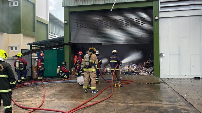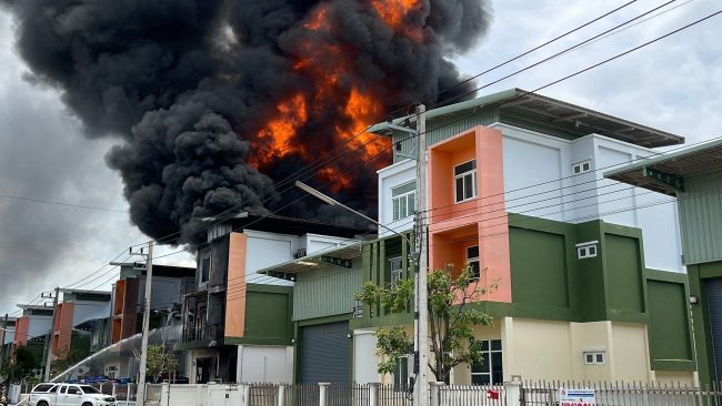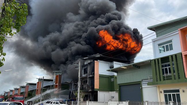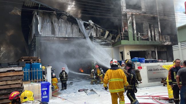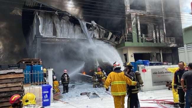 ปทุมธานี-อพยพโกลาหล ไฟไหม้โรงงานผลิตกาว ย่านลำลูกกา เสียงระเบิดดังสนั่นหวั่นไหว ควันดำพวยพุ่งขึ้นฟ้า ส่งกลิ่นเหม็นคละคลุ้งไปทั่วบริเวณ เบื้องต้นยังไม่มีรายงานผู้เสียชีวิตหรือบาดเจ็บ