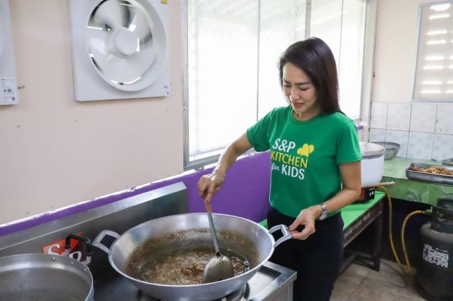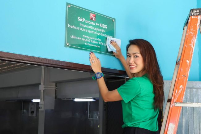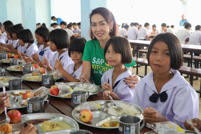 คุณมณีสุดา ศิลาอ่อน ประธานเจ้าหน้าที่สำนักพัฒนาความยั่งยืนและสื่อสารองค์กร บริษัท เอส แอนด์ พี ซินดิเคท จำกัด (มหาชน) นำทีมผู้บริหารและพนักงานเข้าไปพัฒนาและปรับปรุงโรงครัวโรงอาหาร ภายใต้โครงการ S&P Kitchen for Kids ต่อเนื่องเป็นปีที่ 15 โดยมีวัตถุประสงค์เพื่อส่งเสริมด้านโภชนาการและสุขอนามัยที่ดีให้แก่โรงเรียนในถิ่นทุรกันดารทั่วประเทศ ซึ่งเป็นหนึ่งในพันธกิจการพัฒนาที่ยั่งยืนของบริษัทฯ ตลอดระยะเวลา 50 ปี
