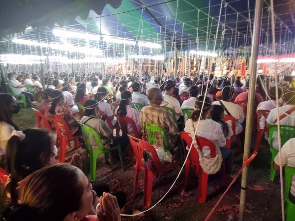 ปราจีนบุรี–ประชาชนจากทั่วสารทิศกว่า 1,000 คน แห่ร่วมพิธีบวงสรวงปู่เวชสุวรรณจัดสวดบูชานพเคราะห์-ดาวเสาร์ใกล้โลกที่วัดม่วงขาวแก้วพิกุล ตำบลโคกปีบ อำเภอศรีมโหสถ เพื่อเป็นศิริมงคลต่อชีวิตและลุ้นเลขเด็ดซื้อหวยลุ้นลาภก้อนโต