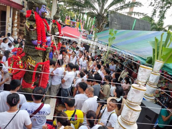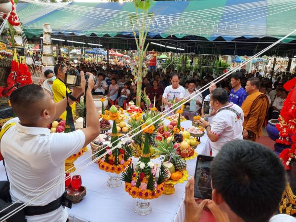 ขณะที่ชาวบ้านรายหนึ่ง กล่าวว่า ทราบข่าวทางวัดจัดเจริญพระพุทธมนต์ สวดบูชานพเคราะห์ และบวงสรวงปูท้าวเวชสุวรรณ จึงมาขอพร – ขอโชคลาภ โดยงวดที่แล้วถูกเลขท้าย 2ตัวสลากกินแบ่งรัฐบาลไปคนละ 4 ใบ