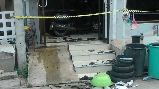 พ.ต.ท.สุวพงษ์ ทองประไพ สว. (สอบสวน) สภ.เมืองลพบุรี ได้รับแจ้งมีคนร้ายราดน้ำมันจุดไฟเผาบ้านเลขที่ 1248 หมู่บ้านเอื้ออาทร ถนนศรีอินทราทิตย์ซอย 17 หมู่ 2 ต.ท่าแค ตรวจสอบพบชาวบ้านช่วยกันดับไฟหมดแล้ว ตรวจสอบกระจกประตูหน้าบ้านถูกทุบแตก ภายในบ้านพบเศษขวดแตกกระจายเกลื่อนพื้นมีกลิ่นน้ำมันเบนซินคละคลุ้งไปทั่วบ้านและมีผู้บาดเจ็บ 2 คนถูกไฟคลอกอาการสาหัส เจ้าหน้าที่นำส่ง รพ.พระนารายณ์มหาราช ทราบชื่อนางนภาดา สุวคนธ์ อายุ 66 ปี ถูกไฟลวกกลางหลัง และ น.ส.ฐานิตา หรือฟ้า สุวคนธ์ อายุ 31 ปี ลูกสาวนางนภาดา ถูกไฟคลอกตามร่างกายหลายแห่ง