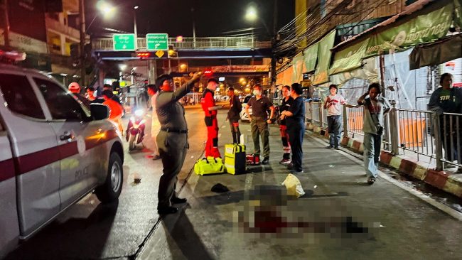 ร.ต.ท.หญิงปภัทสนี สุดจิตจูล รอง สว. (สอบสวน) สภ.เมืองนนทบุรี ได้รับแจ้งเมื่อเวลา 01.30 น. วันที่ 3 ก.ย.2566 เหตุวัยรุ่นไล่ฟันกันบาดเจ็บสาหัส 2 ราย บนถนนประชาราษฎร์ บริเวณหน้าตลาดสดเทศบาลนครนนทบุรี ต.สวนใหญ่ ไปตรวจพร้อมด้วยกู้ภัยมูลนิธิร่วมกตัญญู หน่วยกู้ชีพโรงพยาบาลพระนั่งเกล้า พบ ด.ช.ชญานินท์ หรือเมล์ จันทร์เขียว อายุ 14 ปี มีบาดแผลถูกฟันที่ท้ายทอยเป็นแผลฉกรรจ์และนายณภัทร หรือเมฆ ฉันโน อายุ 16 ปี ถูกฟันแทงตามลำตัว 5 แผล ใกล้กันพบรถจักรยานยนต์ฮอนด้า เวฟ สีส้ม-ดำ ล้มอยู่กลางถนน เจ้าหน้าที่ช่วยกันปฐมพยาบาลผู้บาดเจ็บเบื้องต้นก่อนนำส่งโรงพยาบาล