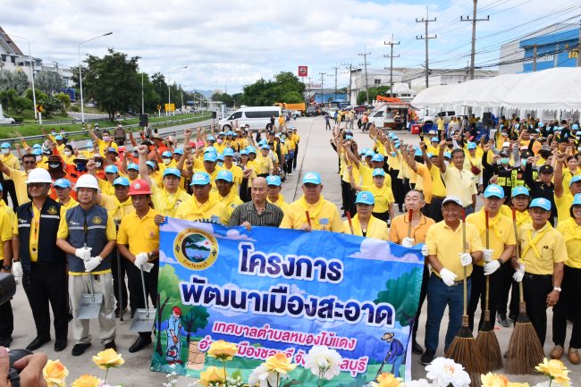นายธวัชชัย ศรีทอง ผู้ว่าราชการจังหวัดชลบุรี กล่าวว่า จังหวัดชลบุรี มีนโยบายเร่งด่วนในการขับเคลื่อนเมืองสะอาด เริ่มต้นนำร่องในพื้นที่เส้นทางสายหลักของจังหวัดชลบุรีให้มีความเป็นระเบียบเรียบร้อย เน้นการจัดระเบียบสายไฟฟ้าและสายสื่อสาร การจัดเก็บขยะและป้ายโฆษณาและป้ายประชาสัมพันธ์ที่กีดขวางการจราจร การขุดลอกคูคลองที่ไหลผ่านถนนสุขุมวิท การเก็บผักตบชวาและสิ่งปฏิกูลที่กีดขวางทางน้ำ การขุดลอกท่อระบายน้ำ เพื่อให้มีความเป็นระเบียบเรียบร้อย สะอาด และปลอดภัย ในบริเวณถนนเส้นหลักทำให้เกิดความเป็นระเบียบเรียบร้อย สร้างความประทับใจและปลอดภัยในการขับขี่สัญจรของผู้ใช้รถใช้ถนน ประชาชนและนักท่องเที่ยวที่เดินทางเข้ามาในพื้นที่จังหวัดชลบุรี