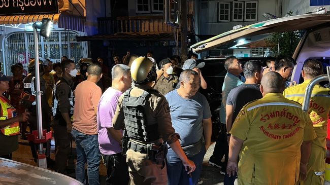 ที่เกิดเหตุพบ นาย พรเทพ ศรีวรรณ อายุ 29 ปี ชาวอำเภอเมืองสรวง จังหวัดร้อยเอ็ด นอนหายใจโรยรินอยู่บนพื้นถนนกลางซอย มีบาดแผลถูกมีดแทงที่กลางอก เจ้าหน้าที่กู้ชีพให้การช่วยเหลือปฐมพยาบาลเบื้องต้น และทำการปั้มหัวใจเพื่อยื้อชีวิต ก่อนจะเร่งเคลื่อนย้ายนำส่งโรงพยาบาลจุฬารัตน์ 5 ต่อมานาย พรเทพ ทนพิษบาดแผลไม่ไหว เสียชีวิตในเวลาต่อมาที่โรงพยาบาล นางสาว ศิริพร สิงห์ขัน อายุ 37 ปี ภรรยาของผู้เสียชีวิต ซึ่งกำลังตั้งครรภ์ได้ 8 เดือน ได้รับบาดเจ็บที่หัวเข่าทั้งสองข้าง และที่ริมฝีปากเป็นแผลแตก เจ้าหน้าที่ให้การช่วยเหลือปฐมพยาบาลก่อนเร่งนำส่งโรงพยาบาลใกล้เคียง ใกล้กันพบรถจักรยานยนต์ ยี่ห้อ ยามาฮ่า ฟีโน่ สีขาว-น้ำเงิน 1 กม 2390 สมุทรสาคร ล้มอยู่กลางซอย บริเวณที่พักเท้าพบถุงกับข้าว ห่างไปไม่ไกลพบต้นกัญชาปลูกอยู่หน้าบ้านที่เกิดเหตุมีรอยถูกตัดยอดออกไปจนหมด