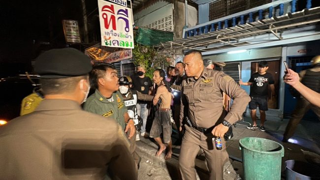 สมุทรปราการ-ตำรวจสภ.บางเสาธง ตามรวบทันควันคนร้ายลอบตัดกัญชาเหี้ยมโหดใช้มีดจ้วงแทงผัวดับแทนเมียท้อง 8 เดือน ขณะขับจยย.กลับจากซื้ออาหารพบเห็นคนร้าย