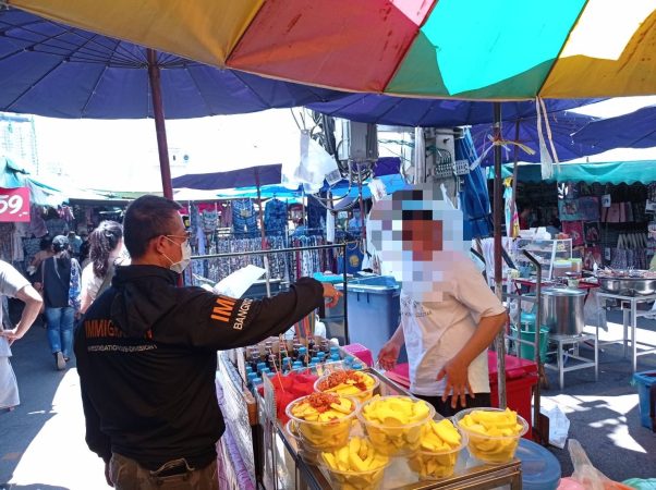 โดยเฉพาะย่านธุรกิจสำคัญ กลางกรุงเทพมหานคร จึงเข้าตรวจสอบจับกุมบริเวณตลาดนัดจตุจักร แขวงจตุจักร กทม. ปรากฏว่าเมื่อต่างด้าวเห็นเจ้าหน้าที่ตำรวจ ต่างก็วิ่งหลบหนีแตกตื่นออกไปทุกทิศทาง สร้างความโกลาหลไปชั่วขณะ โดยสามารถติดตามจับกุมตัวกลับมาได้ 5 ราย แบ่งเป็นสัญชาติกัมพูชา 3 ราย สัญชาติเมียนมาร์ 2 ราย ซึ่งมีพฤติการณ์เร่ขายอาหาร และเครื่องดื่ม โดยใช้รถเข็นเคลื่อนที่และแผงลอยแบบชั่วคราว ทั้งนี้ ผู้ถูกจับบางรายไม่สามารถแสดงเอกสารหนังสือเดินทางและใบอนุญาตทำงานให้เจ้าหน้าที่ตรวจสอบได้ บางรายมีหนังสือเดินทางแต่การอนุญาตสิ้นสุด หรือได้รับการผ่อนผันการตรวจลงตราให้เดินทางเข้ามาเพื่อการท่องเที่ยว
