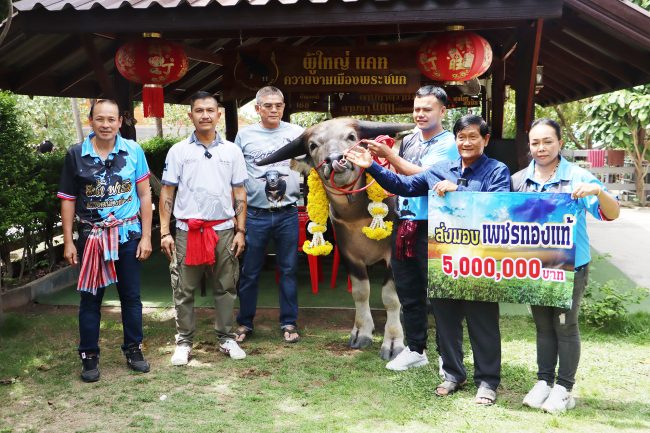 เกษตรกรเมืองชาละวันใจถึงหอบเงิน5ล้านลงทุนซื้อควายเพศผู้ “เพชรทองแท้” ลูกสายตรง “รุ่งเพชร” ควายงามเงินล้าน จ.อุทัยธานี เพื่อต่อยอดให้เป็นพ่อพันธุ์ผลิตลูกรวมถึงเป็นการพัฒนาสายพันธุ์ควายไทยให้เป็นสัตว์เศรษฐกิจ เชื่อมั่นยุคนี้ฟาร์มปศุสัตว์ยังไปได้สวย