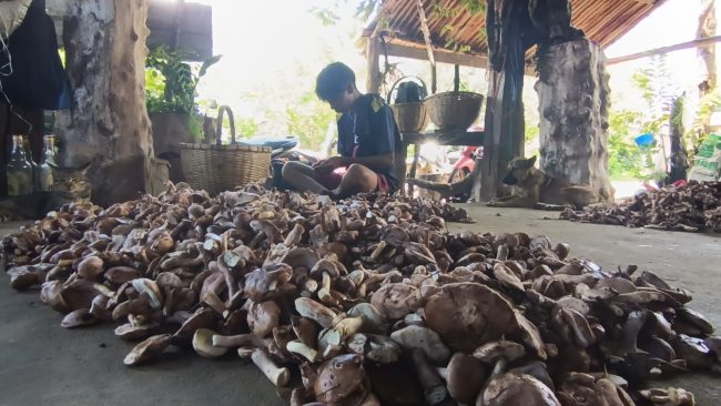 ชาวบ้านในพื้นที่บ้านตลิ่งชัน ต.จระเข้หิน อ.ครบุรี จ.นครราชสีมา ต่างพากันออกไปหาเก็บเห็ดป่า อย่างเช่น เห็ดผึ้งขม ที่กำลังงอกออกมาตามไร่สวนของชาวบ้านที่อยู่ติดกับแนวเขตป่า ซึ่ง ช่วงนี้มีฝนตกลงมาอย่างต่อเนื่อง ประกอบกับสภาพอากาศร้อนอบอ้าวก่อนฝนตก จึงส่งผลดีทำให้เห็ดป่าจำนวนมากเจริญงอกงาม ชาวบ้านจึงออกมาหาเก็บเห็ดไปประกอบอาหารเลี้ยงครอบครัว และจำหน่ายเป็นรายได้เสริม ซึ่งแต่ละวัน ชาวบ้านบางรายได้สามารถหาเห็ดได้มากถึง 100 กิโลกรัมต่อวันเลยทีเดียว เรียกได้ว่าต้องหามกลับบ้านกันเลยทีเดียว