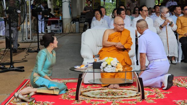 เบื้องหน้าพระพุทธมหาวชิรอุตตโมภาสศาสดา หน้าผาเขาชีจรรย์ ต.นาจอมเทียน อ.สัตหีบ จ.ชลบุรี พลเรือเอก อะดุง พันธุ์เอี่ยม ผู้บัญชาการกองเรือยุทธการ (ผบ.กร.) และได้รับโปรดเกล้าฯ ให้ดำรงตำแหน่ง ผู้บัญชาการทหารเรือ (ผบ.ทร.) ในวันที่ 1 ต.ค.66 นี้ พร้อมด้วย คุณกีรตา พันธุ์เอี่ยม ประธานชมรมภริยากองเรือยุทธการ เป็นประธานในพิธีบวงสรวงสิ่งศักดิ์สิทธิ์ พระพุทธมหาวชิรอุตตโมภาสศาสดา ในพิธีเปิดงานเทศกาลแห่โคม ชมพระฉาย สืบสายศิลป์ ถิ่นหนองจับเต่า เขาชีจรรย์ ครั้งที่ 9 โดยมี พระอาจารย์ชายกลาง อภิญาโณ จากวัดพระราม 9 กาญจนาภิเษก พลเรือโท พงศ์ศักดิ์ ภูรีโรจน์ อดีตผู้บัญชาการหน่วยบัญชาการนาวิกโยธิน ในฐานะประธานกรรมการมูลนิธิพระพุทธรูปแกะสลักหน้าผาเขาชีจรรย์