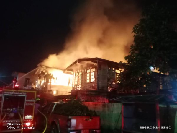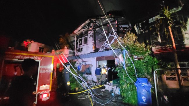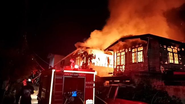 ระทึก!เพลิงโหมไหม้บ้านพักกลางดึกเสียหาย 2 หลัง คาดไฟฟ้าลัดวงจร