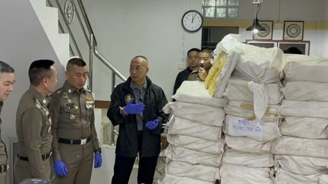 ว่าที่ ผบ.ตร.ต่อศักดิ์ ลุยงานแรก จับแก๊งยาเสพติดรายใหญ่ ยึดของกลางยาบ้า 15 ล้านเม็ด เฮโรอีน 443 แท่ง ยาไอซ์ 420 กิโลกรัม และยาแฮปปี้วอเตอร์ – ยาไฟว์ไฟว์ อีกเพียบ