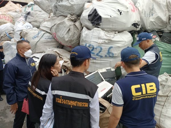 พร้อมตรวจยึดของกลาง พบสินค้าประเภทขยะอิเล็กทรอนิกส์จํานวนมาก โดยยึดตรวจสินค้า ชิ้นส่วนอิเล็กทรอนิกส์ที่มีแหล่งที่มาจากต่างประเทศ จํานวน 1,960 ชิ้น, โน๊ตบุ้ค จํานวน 60 ชิ้น และ ชิ้นส่วนอิเล็กทรอนิกส์ที่มีแหล่งที่มาจากต่างประเทศอีก 1,000 กิโลกรัม
