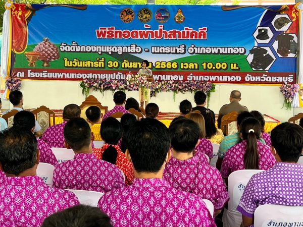 ที่ โรงเรียนพานทองสภาชนูปถัมภ์ อำเภอพานทอง จังหวัดชลบุรี นางสาวฐิติลักษณ์ คำพา รองผู้ว่าราชการจังหวัดชลบุรี เป็นประธานในการทอดผ้าป่าสามัคคี จัดตั้งกองทุนชุดลูกเสืออำเภอพานทอง โดยมี นางสาวสมพร หิรัญลักษณ์สุด ผู้อำนวยการโรงเรียนพานทองสภาชนูปถัมภ์ นางสาวกันยากร กุลพรรัตน์ ปลัดอำเภอหัวหน้ากลุ่มงานบริการงานปกครอง รักษาราชการแทนนายอำเภอพานทอง คณะกรรมการกองทุนชุดลูกเสืออำเภอพานทอง และคณะกรรมการดำเนินงานพิธีทอดผ้าป่าสามัคคีจัดตั้งกองทุนชุดลูกเสืออำเภอพานทอง เข้าร่วมงาน
