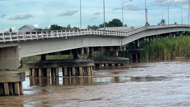 กำแพงเพชร-สะพานวังแขม อ.คลองขลุง ใกล้ถล่มลงน้ำปิง น้ำไหลเชี่ยวแรงขึ้นเรื่อยๆ เซาะตอม่อที่ทรุดอยู่เดิมเสียหายหนักขึ้น ผู้ปกครองรับลูกหลานเลิกเรียนวิ่งข้ามสะพานกลับบ้าน