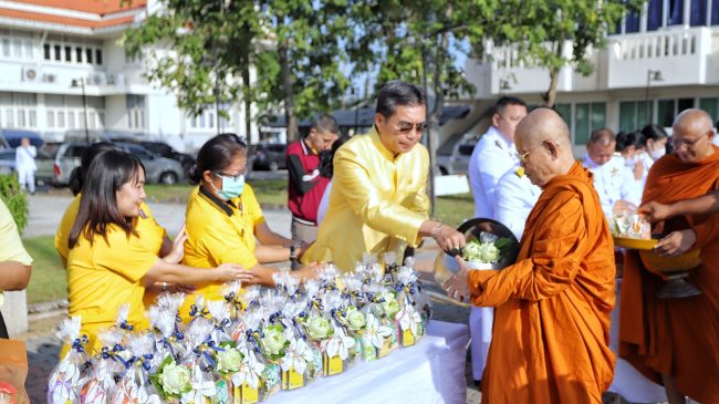 ผู้ว่าฯปทุมธานีนำพสกนิกรทำบุญตักบาตรถวายเป็นพระราชกุศล ในหลวง ร.9“วันนวมินทรมหาราช”