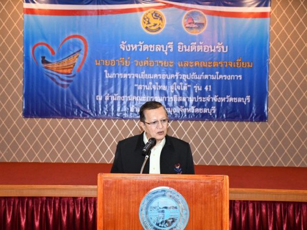 เมื่อวันพุธที่ 18 ตุลาคม 2566 เวลา 10.00 น. นายธวัชชัย ศรีทอง ผู้ว่าราชการจังหวัดชลบุรี ให้การต้อนรับนายอารีย์ วงศ์อารยะ รองประธานคณะกรรมการอำนวยการโครงการ “สานใจไทย สู่ใจใต้” และคณะในการเดินทางมาตรวจเยี่ยมครอบครัวอุปถัมภ์ ตามโครงการ “สานใจไทย สู่ใจใต้” รุ่นที่ 41 ณ สำนักงานคณะกรรมการอิสลามประจำจังหวัดชลบุรี ตำบลตะเคียนเตี้ย อำเภอบางละมุง จังหวัดชลบุรี